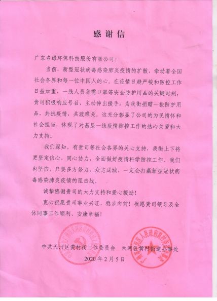 場突如其來的疫情,名綠環(huán)保謹(jǐn)記企業(yè)初心,在馬總的領(lǐng)導(dǎo)下,積極響應(yīng),