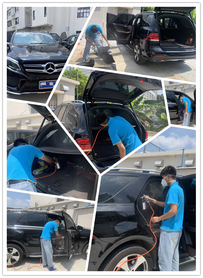 進(jìn)行全車360°全方位無(wú)死角的除甲醛除異味治理,
